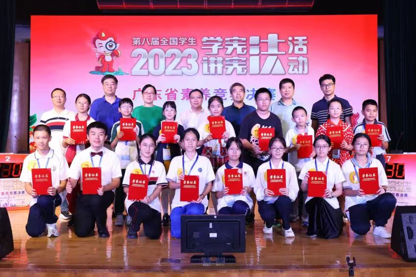在9月19、20日第八届全国学生“学宪法 讲宪法”活动广东省演讲比赛决赛上,华南师范大学附属小学的李嘉明和汕头市龙湖区金阳小学的陈以诺荣获小学组一等奖,中山市华辰实验中学的何政恒和汕尾市华富学校的魏宇萱荣获初中组演讲比赛一等奖。汕头市金山中学的廖偲恬和广州市执信中学的林伊璇荣获高中组演讲比赛一等奖,中山大学的沙佳弈、华南师范大学的关申迪和五邑大学的冯雅雯荣获高校组演讲比赛一等奖。
