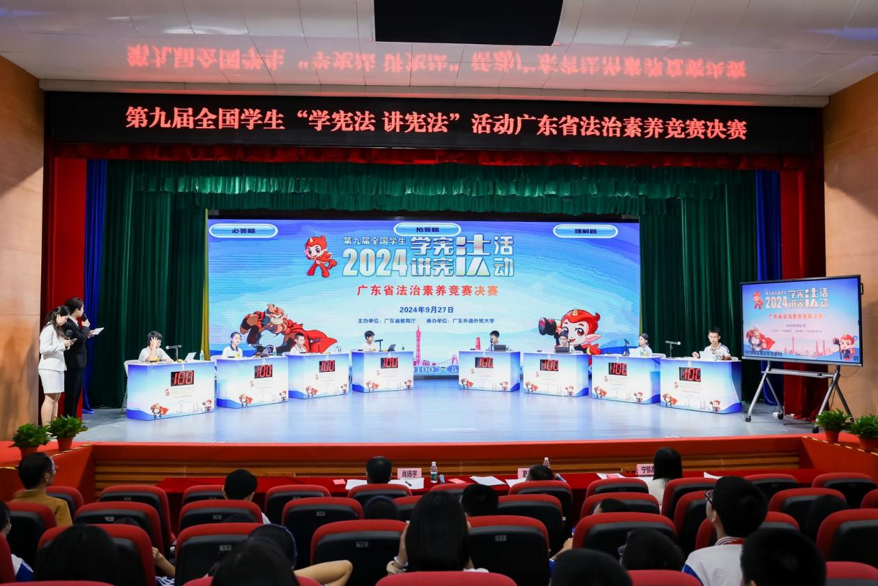 继9月24、25日第九届全国学生“学宪法 讲宪法”活动广东省演讲比赛决赛暨粤港澳大湾区青少年法治演讲比赛之后,9月27日,第九届全国学生“学宪法 讲宪法”活动广东省法治素养竞赛决赛在我校白云山校区顺利举办。