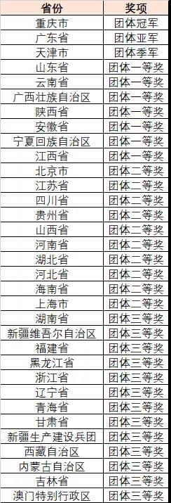 本次知识竞赛决出了团体冠军、团体亚军、团体季军,以及团体一等奖、团体二等奖和团体三等奖。获奖代表队名单如下:
