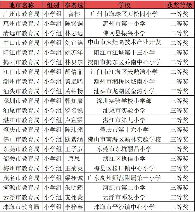 小学组获奖名单
