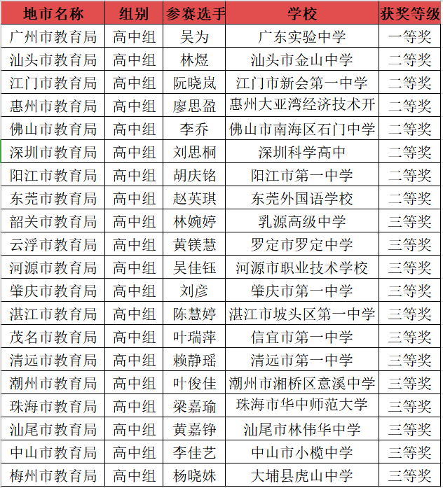 高中组获奖名单
