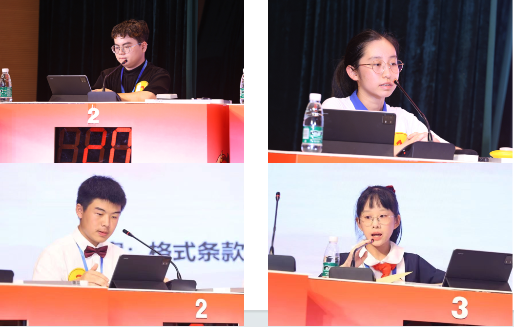 素养竞赛决赛共分为小学组、初中组、高中组和高校组四个组别进行,参赛选手是每组笔试阶段进入前八名的学生。每场比赛设有必答题、抢答题和理解题三个环节,全面考察选手对习近平法治思想、宪法法治知识以及党的二十大精神的理解和掌握,包括宪法基本知识和实际应用能力,考点同时涉及民法典、环境保护、未成年人保护、预防未成年人犯罪、防范校园欺凌、国家安全等相关内容。