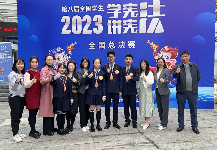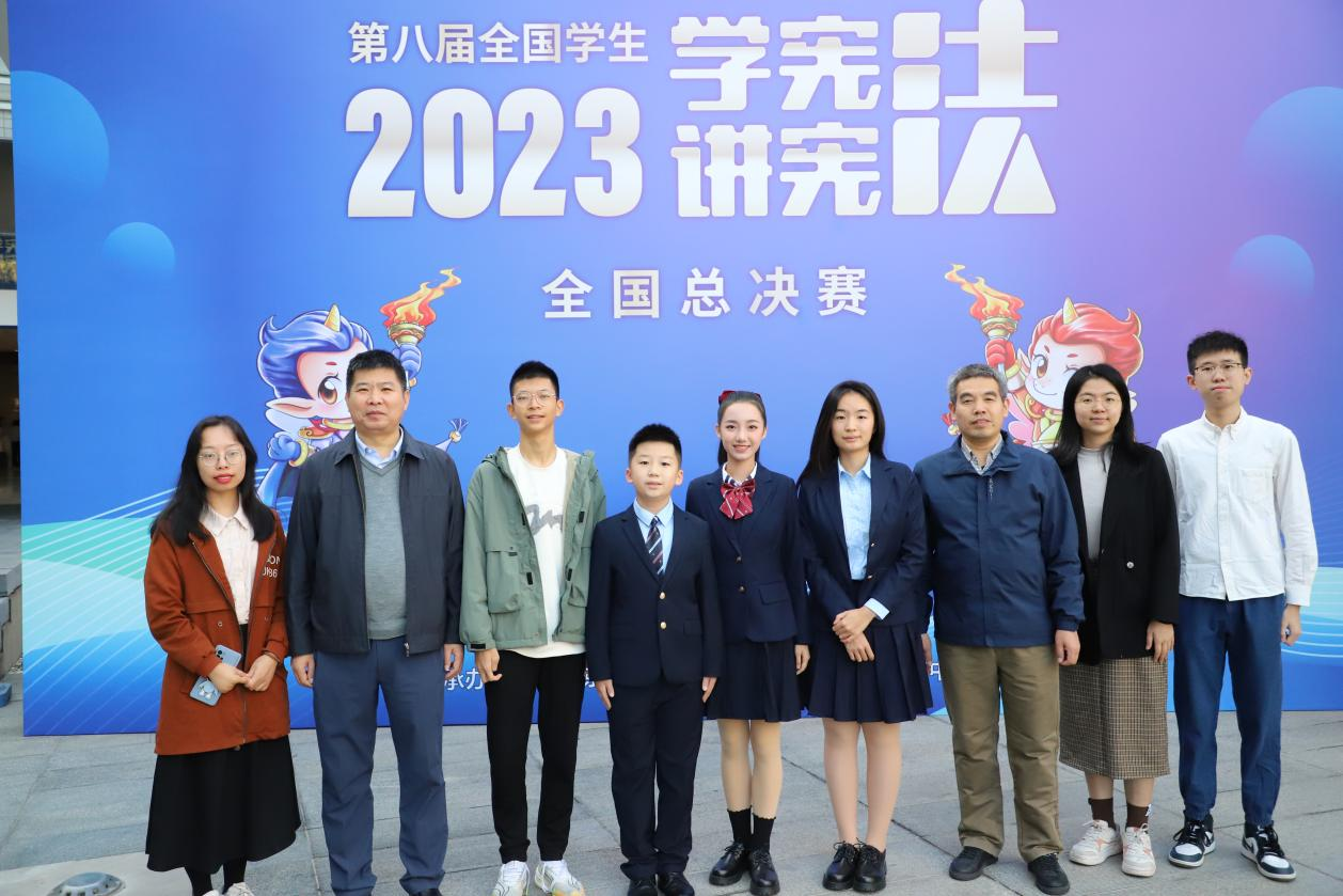 10月30日,为期六天由教育部主办的第八届全国学生“学宪法 讲宪法”活动全国总决赛圆满落幕。来自全国31个省(自治区、直辖市)、新疆生产建设兵团以及香港、澳门特别行政区的选手角逐全国总决赛,广东外语外贸大学法学院本科生张一帆作为广东省代表队参加素养竞赛高校组的选手,与队友一起沉着应对,稳定发挥、获得了团队赛一等奖的好成绩,刷新了广东外语外贸大学参加“学宪法 讲宪法”比赛的最好成绩。广东外语外贸大学团队指导的广东省代表队在演讲比赛和素养竞赛五组比赛中分别获得获得演讲比赛小学组一等奖,高中组季军,初中组和高校组二等奖,素养竞赛团队赛一等奖,总体成绩位居全国前茅。广东代表队出色成绩的获得离不开广东外语外贸大学师生、青少年法治教育中心的共同努力、团结协作、精心指导。