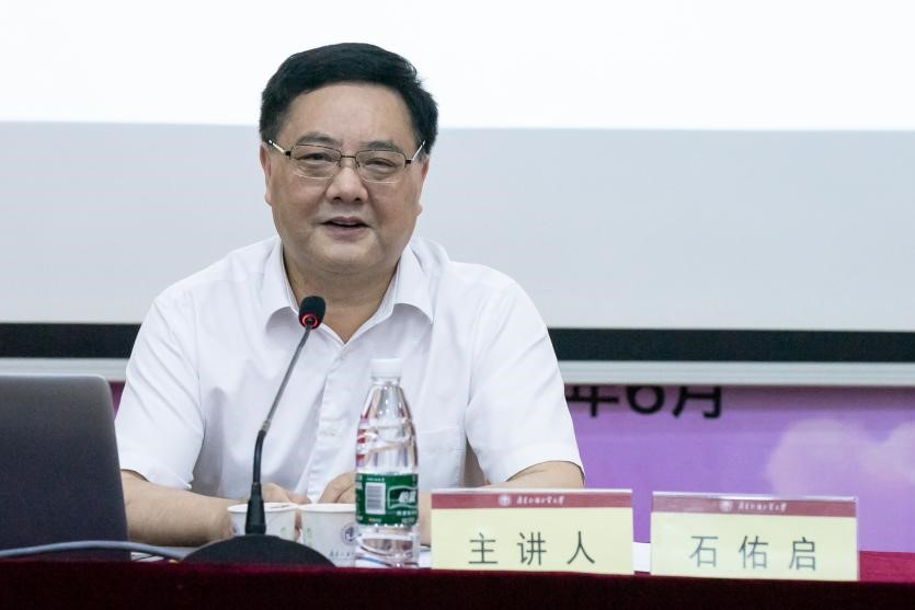 校党委书记、校长石佑启以“学习贯彻习近平法治思想 深入全面推进依法治国”为主题,运用生动语言、相关案例,从重大意义、核心要义、内在逻辑以及实践要求四个方面,对习近平法治思想进行了专题讲解。特别是对习近平法治思想中的“十一个坚持”,作了系统、全面、深入的解读,为全体学员上了一堂生动的法治教育课。